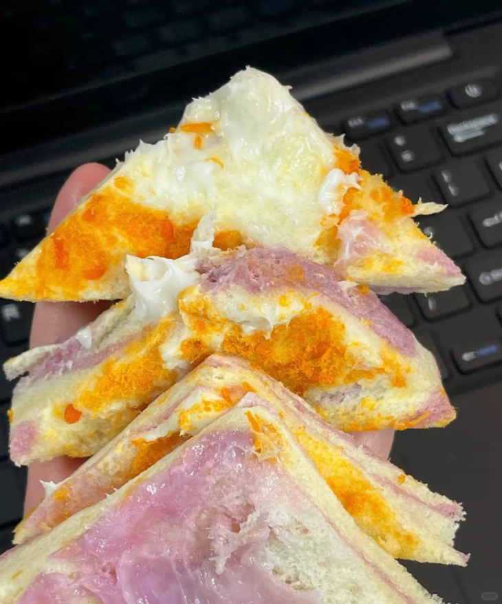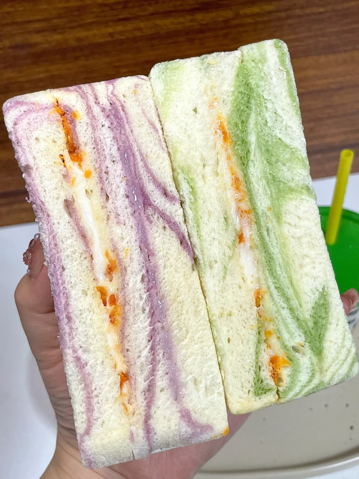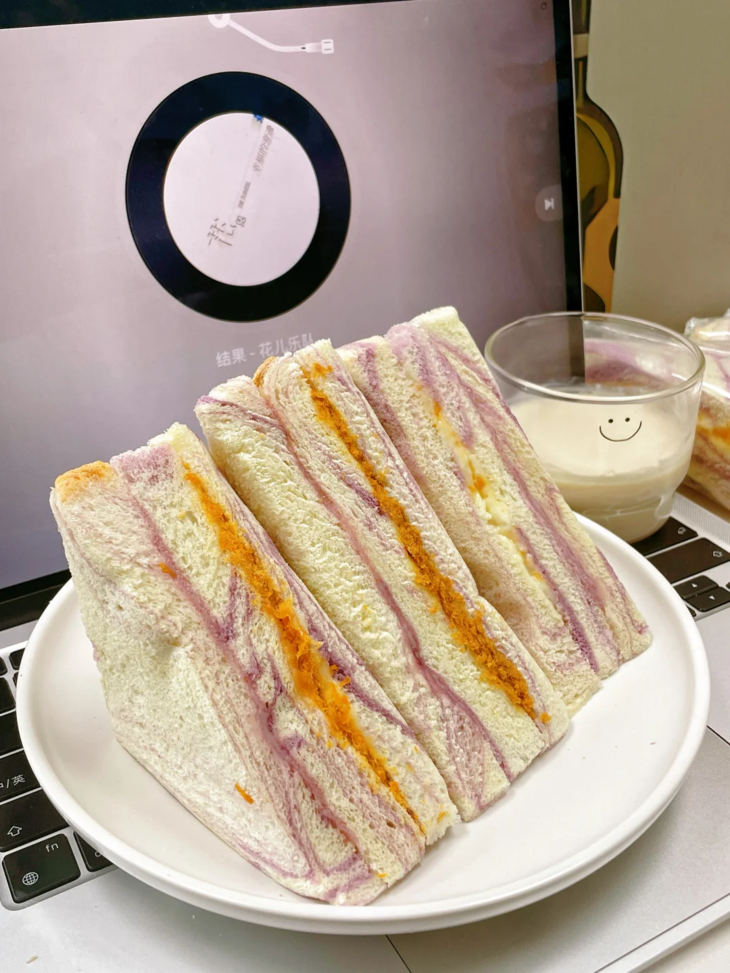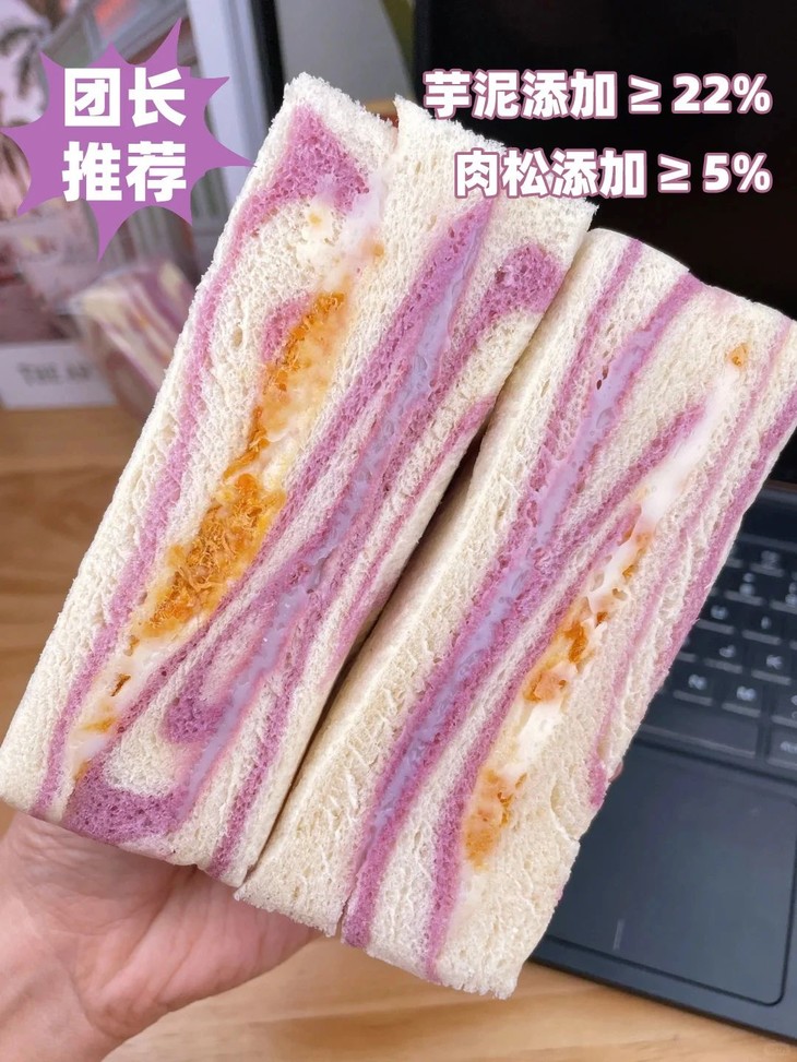 芋泥肉松三明治面包、牛油果肉松三明治面包.