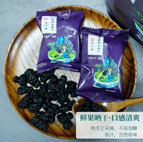 天方健桑椹果干,精选纯手工采摘的大果,鲜果晒干,不添加任何糖分,完整保留了桑椹的原汁原味。采用独立小包装,干净卫生,方便携带,让你随时随地都能享受到这份来自大自然的滋补佳品。