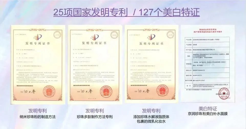从1994年创办至今——拿到手25项国家发明专利,127个美白特证。