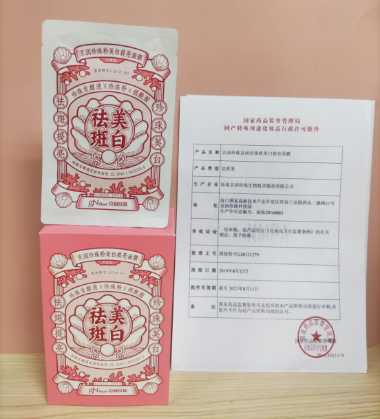 而我们的「京润珍珠粉面膜」,拥有国家药监局颁发的“美白淡斑特证”,在药监局官网就可以查到!
