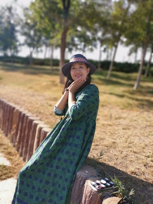 绿底加藏蓝色的波点,很有立体感,