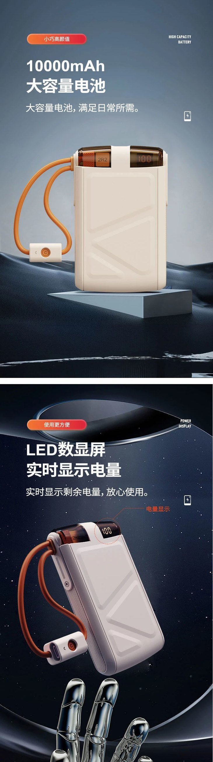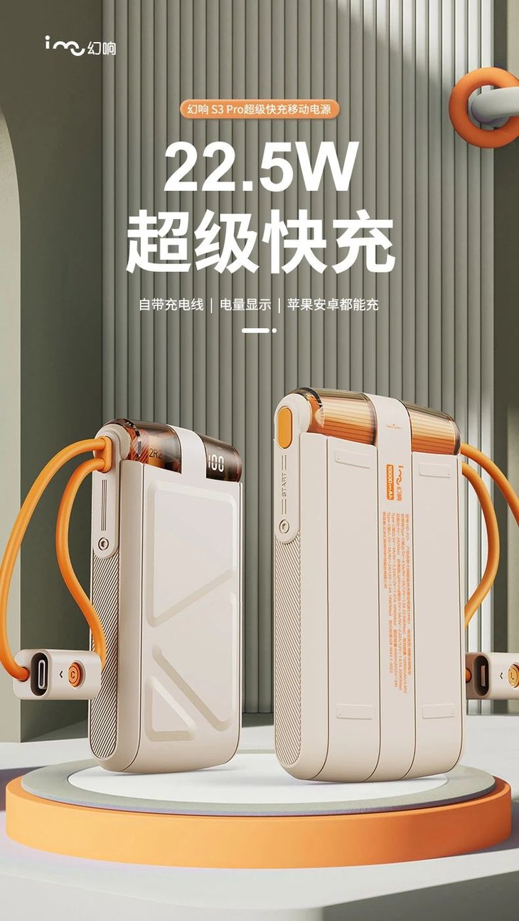 「幻响S3PRO超级快充移动电源」手机的好伴侣,22.5W超级快充,10000mAh大容量,轻便小巧,携带无负担,好看又好用,出门不愁手机没电啦!