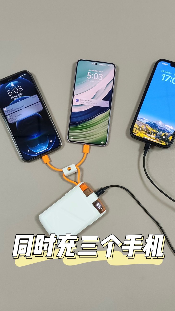 ✅10000mAh大容量,给手机充2-3次,支持三台手机同时充电!