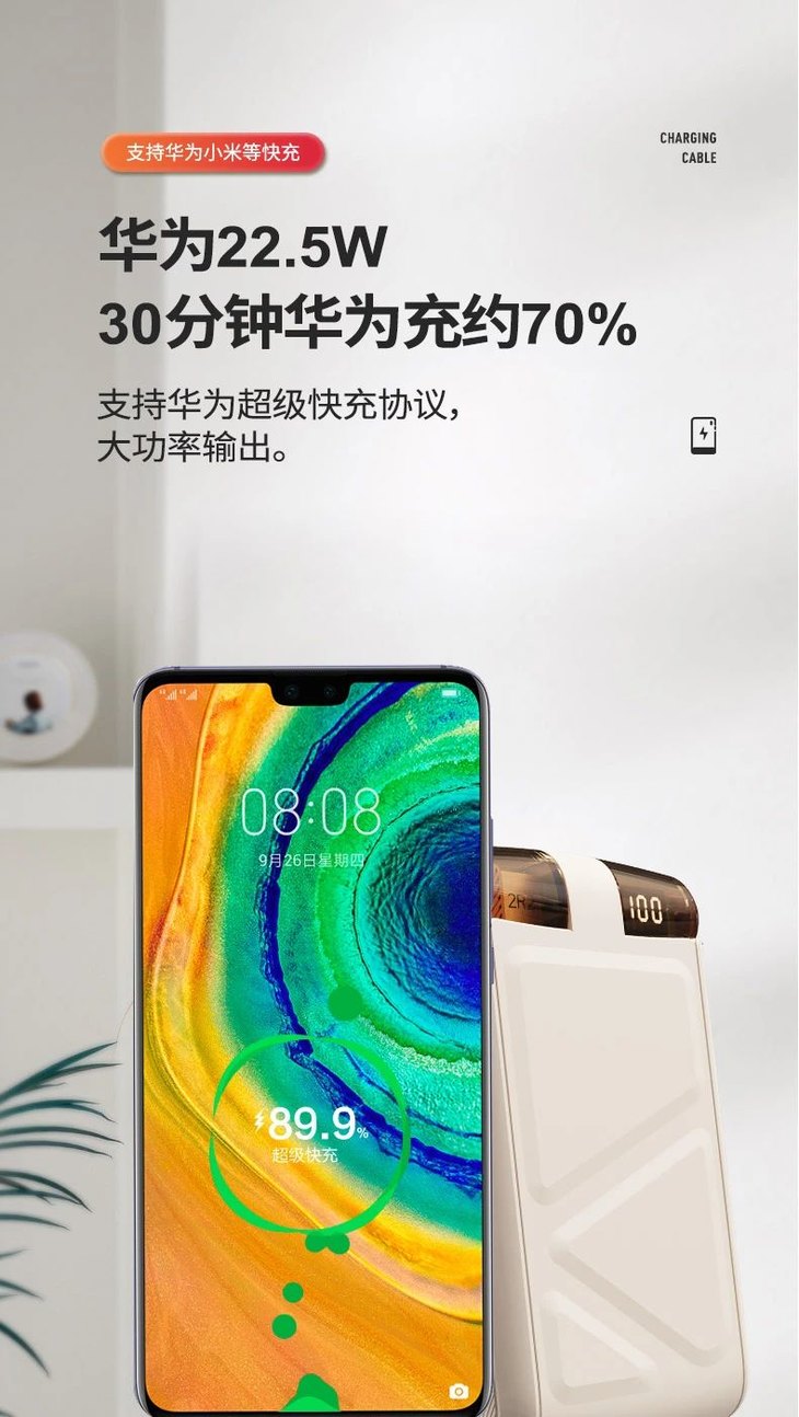 ✅支持华为22.5W超级快充+苹果PD20W快充,30分钟可充70%,速度快到飞起!