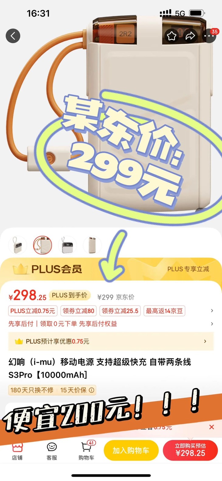 抢疯了❗真的太轻薄啦🤩🥰幻响S3PRO超级快充移动电源】超高颜值❗独家专利收纳双线🤩各品牌手机均🉑快速充电,30分钟可充70%支持全新iPhone15系列🔋🔋全新超薄升级🤩时尚便携安全防爆❗实时显示电量🔋官方售价299元,团购秒杀价99元❗