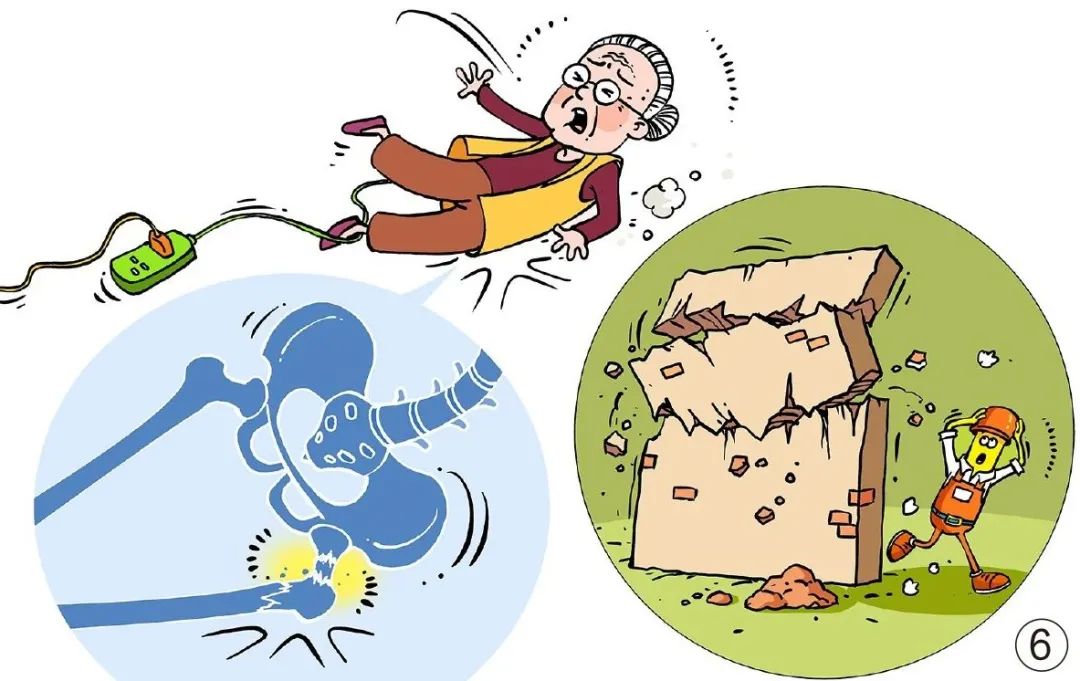 骨质疏松后,人的骨骼承重能力下降,就像萝卜变糠了、木头变朽了。走路不稳、骨折等健康问题会随之而来。