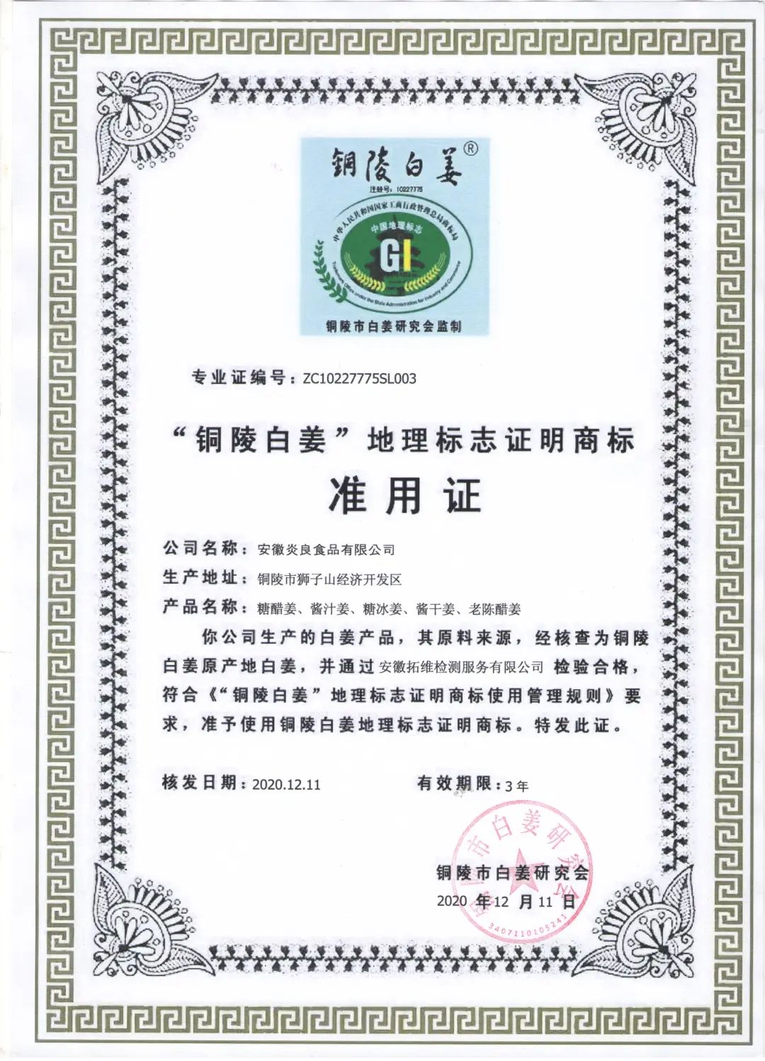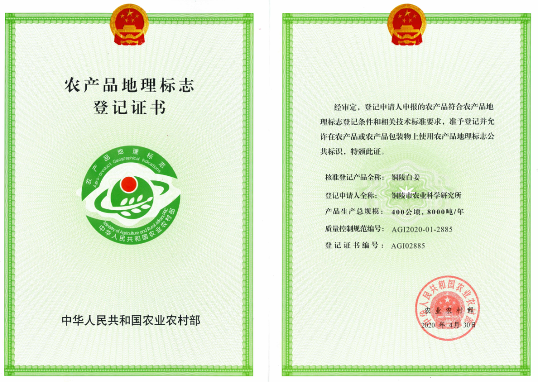 铜陵白姜及其加工制作技艺早在2008年就被列为“安徽省非物质文化遗产名录”,2009年批准为“國家地理标志保护产品”。