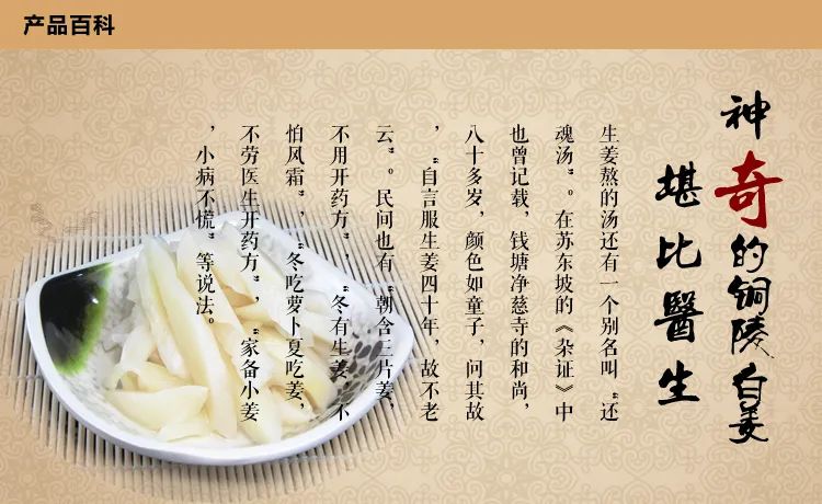 作为食品的同时,铜陵白姜还有延緩缞老、降温提神、驱散寒邪等葯用糼效。