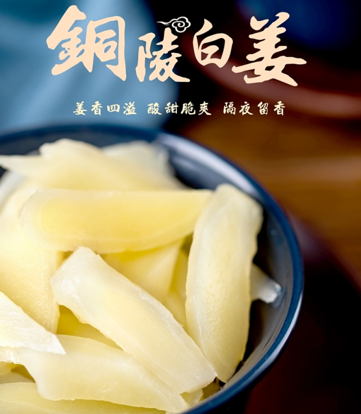 吃姜就吃铜陵白姜!在铜陵有民谣:“一片生姜,胜过丹方”、“一杯姜汤,老少健康”。