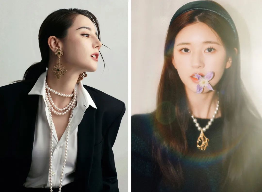 相比起闪耀却让人感到攻击性的钻石,或是奢华气息却略显冰冷的金银,珍珠的圆润配上淡淡的光泽,更能体现女人温婉大气的气质。