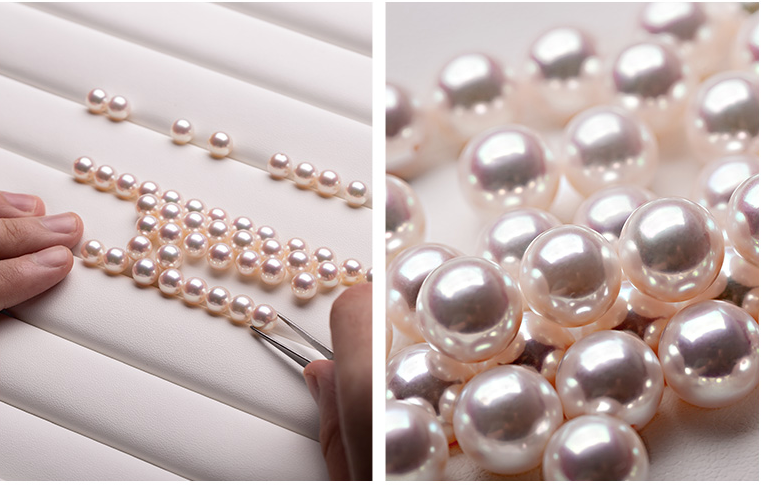 人工精筛,以确保所用的珍珠达到近圆,且饱满有型。