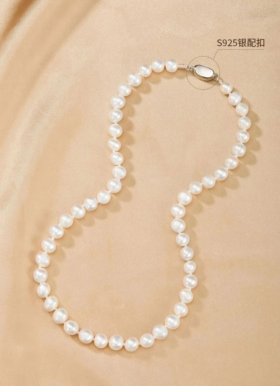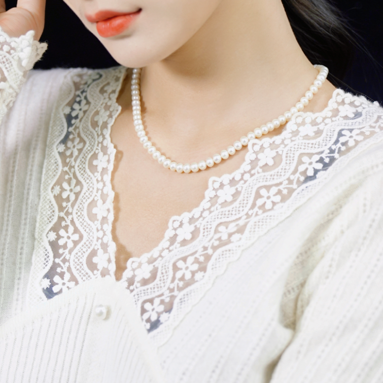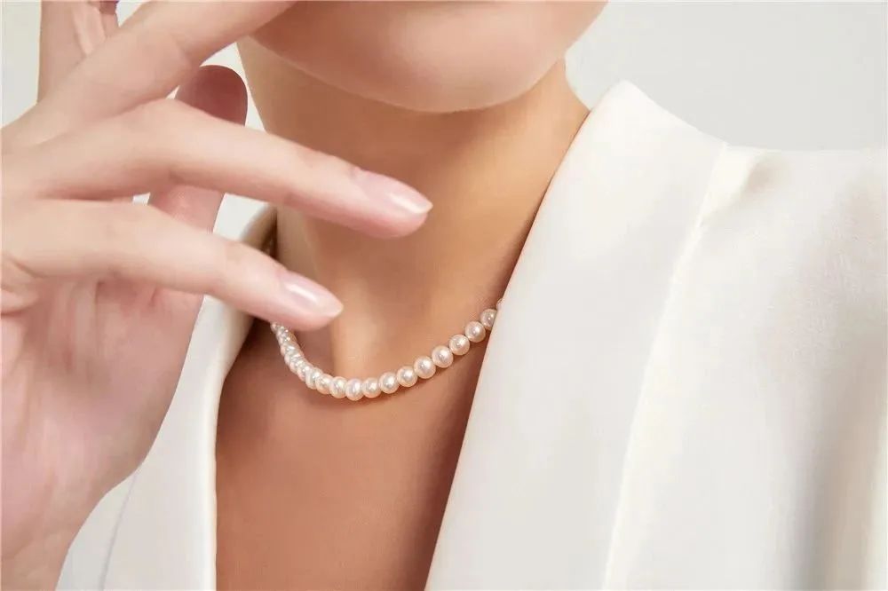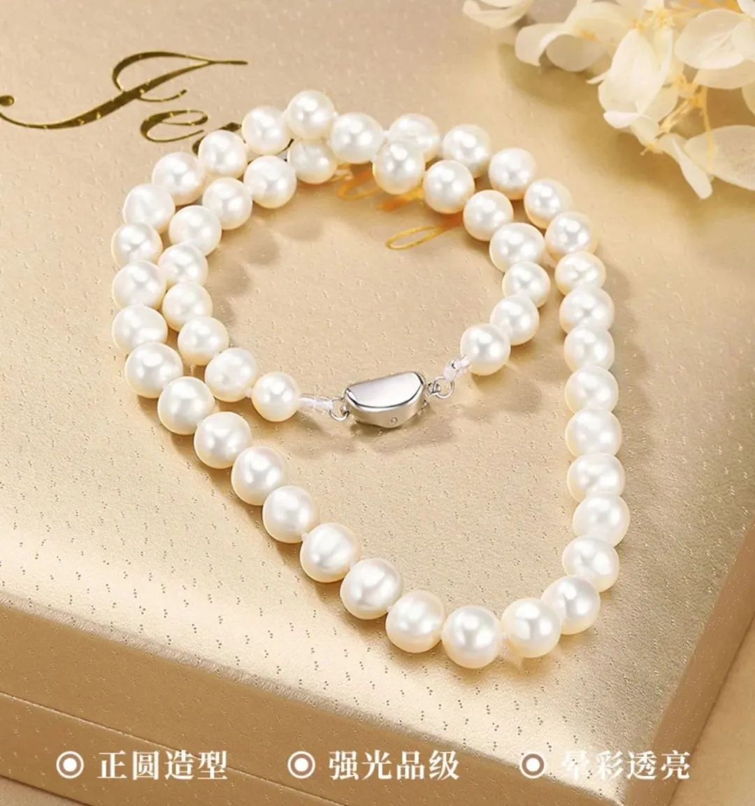 珍珠间隔均匀紧致,扣子两端固定设计,防止断裂,项链更牢固;