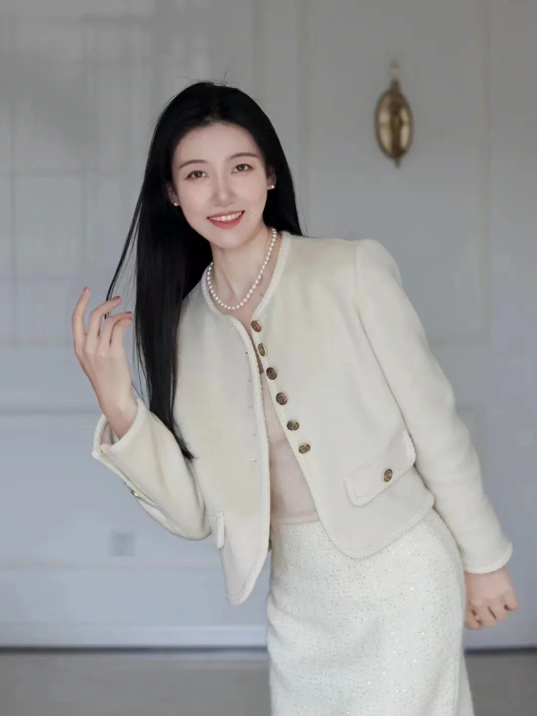 再搭上同款珍珠手链,瞬间贵气逼人,即便衣着普通,依然能以气质秒杀全场!