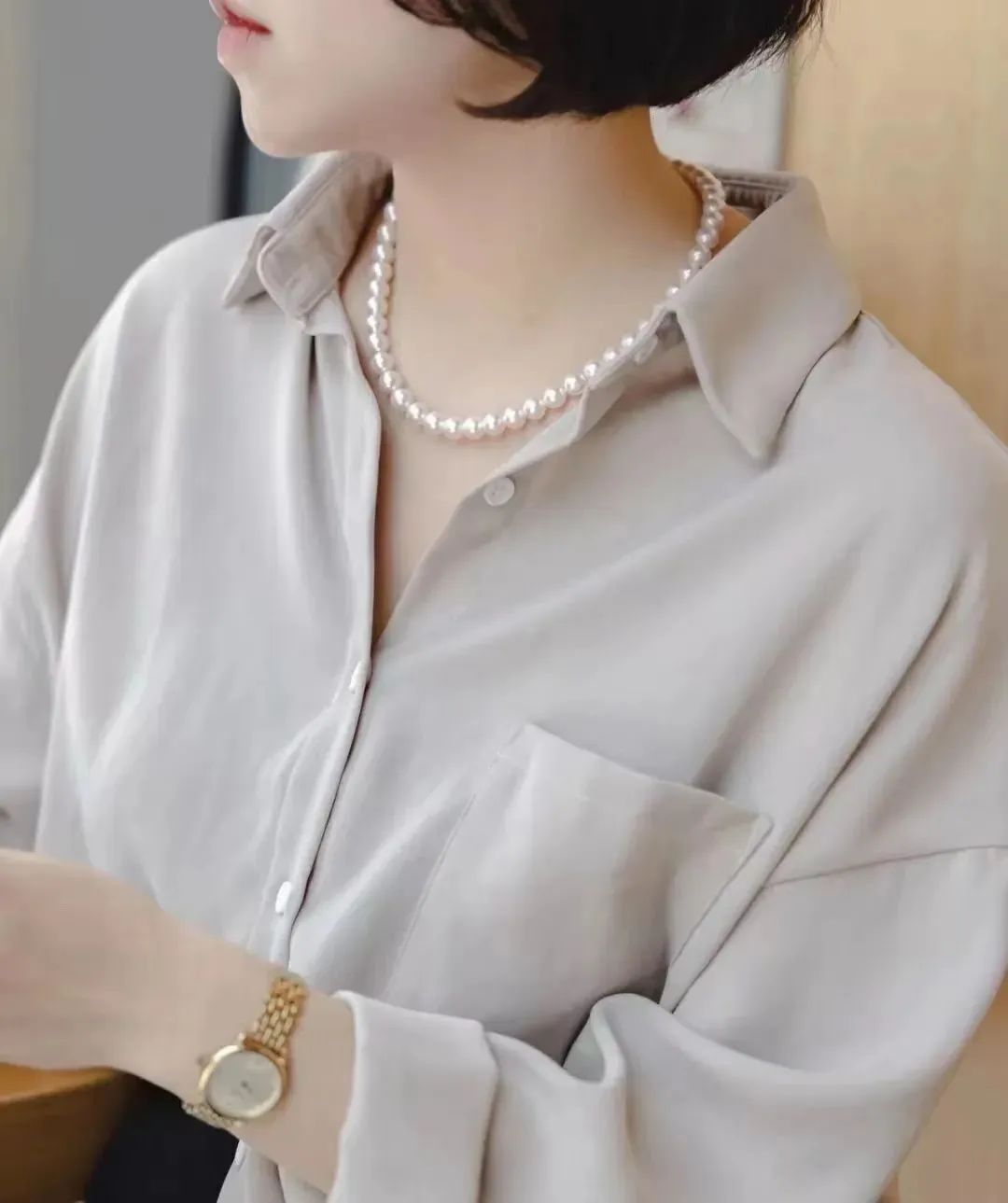 耳垂上佩戴上一颗简约的珍珠耳钉,那种复古的优雅感立刻就散发出来了。
