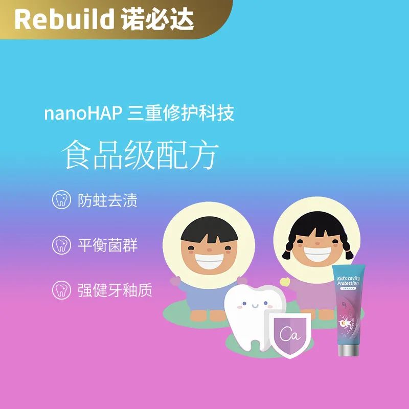 入口的东西,安全才是第一位。诺必达Rebuild HAP牙膏,不含氟化物,不添加任何药物成分,真正做到健康护齿、安全亮白。
