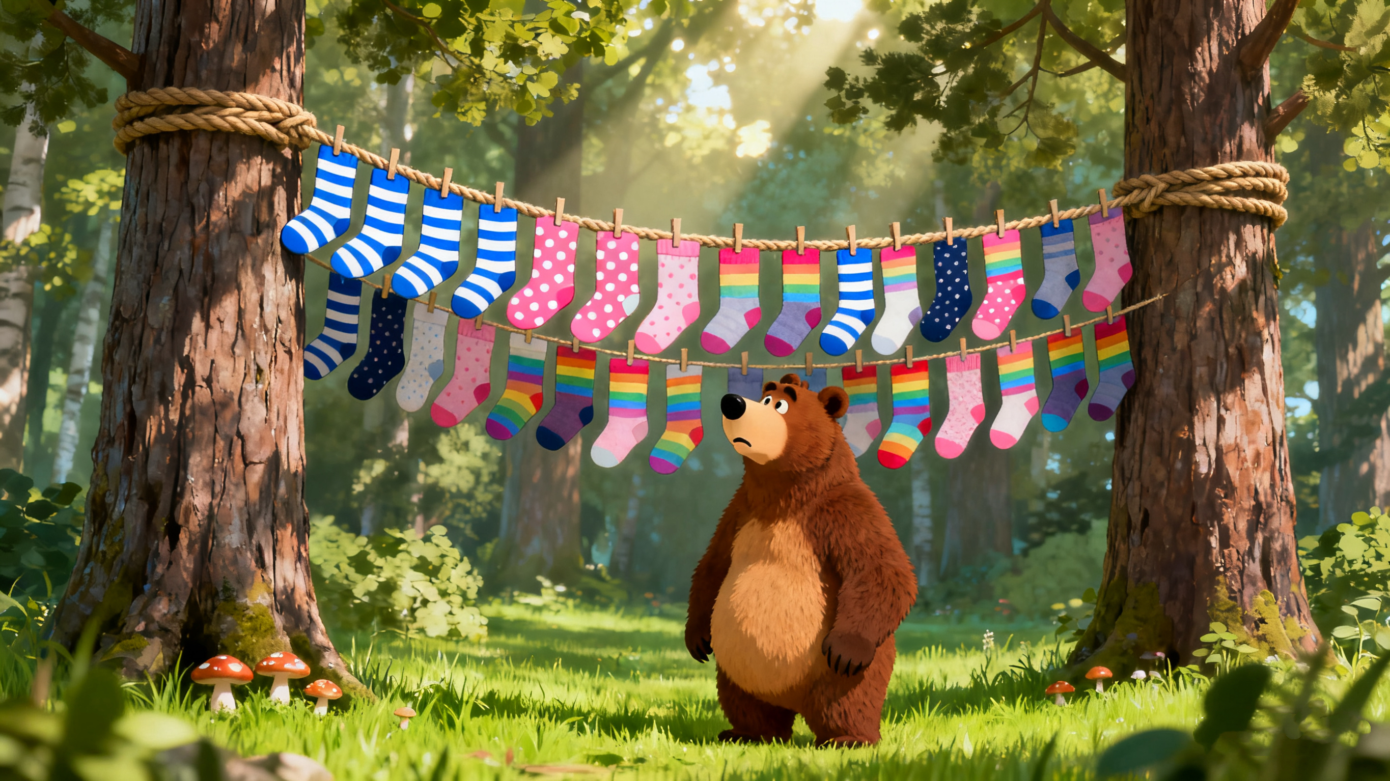 所有的小动物们都知道,大笨熊终于洗袜子了,