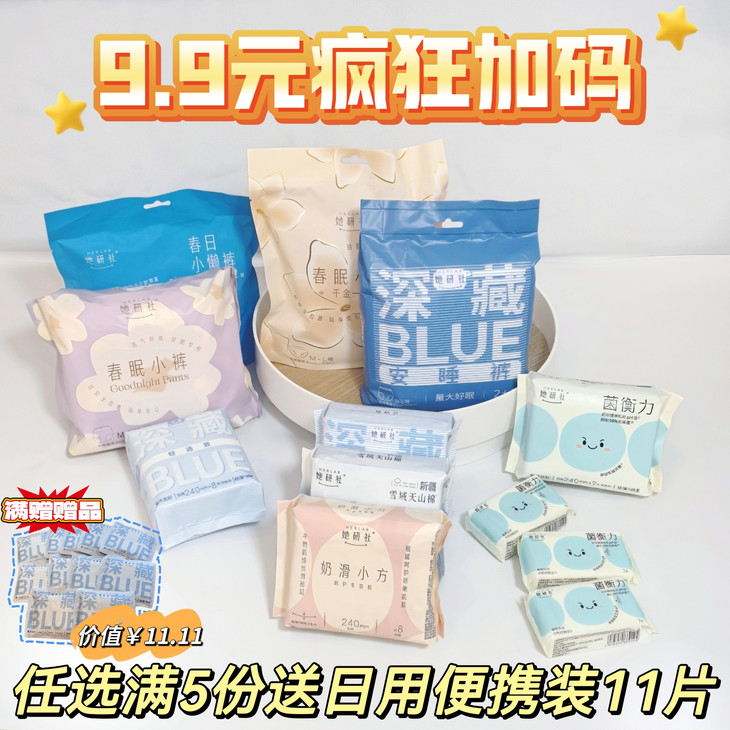 任选5份💰9.9元,赠1组价值11.11元[深藏BLUE常规款卫生巾便携装11片],