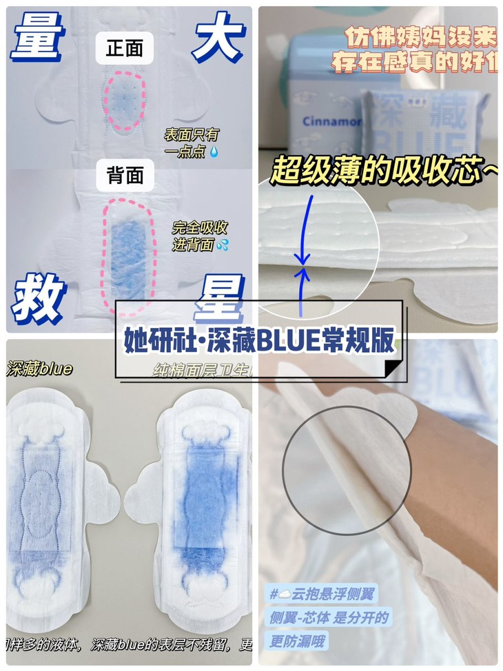 ① 量大怕闷热:深藏BLUE轻透款卫生巾