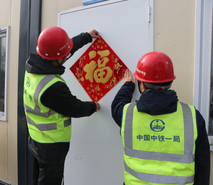 在6号线05工区富春江路站,整个项目部里里外外,“春节元素”处处可见:大红福字贴上了门,工人宿舍内中国结和彩带高高挂起,喜气洋洋。原来,为了让外地留青工友们过个有仪式感的新年,公司专门在春节前将他们的宿舍“装扮一新”,为他们临时打造了一个“新家”。
