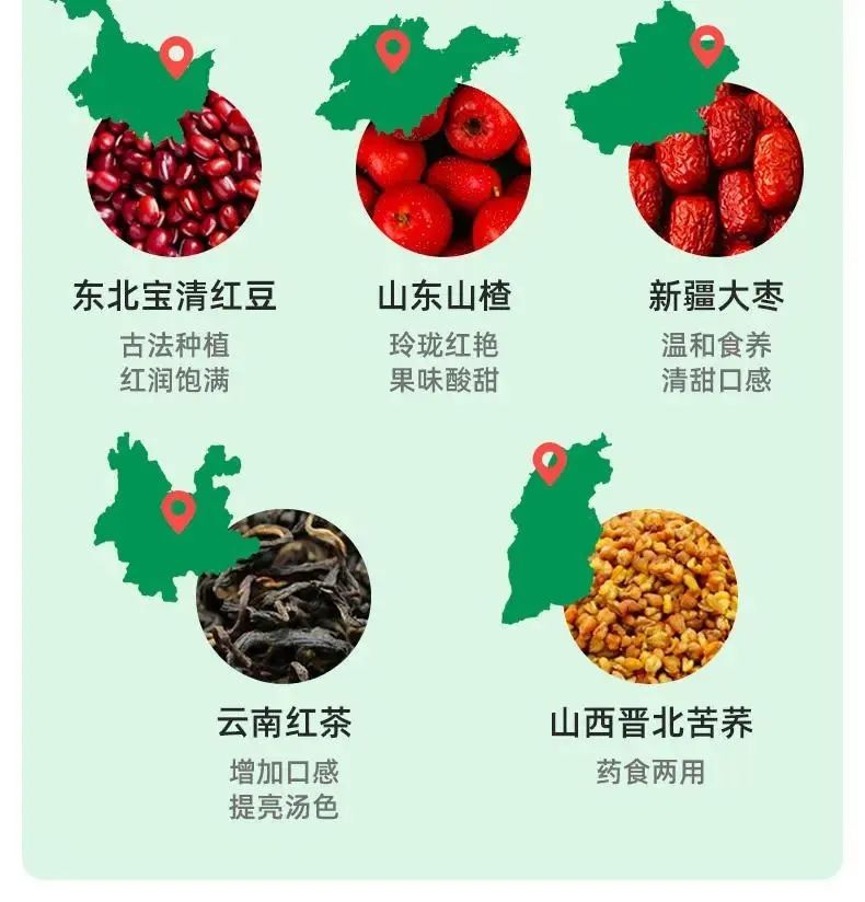 再加入芡实、茯苓、山楂等健脾胃,陈皮、苦荞等清热降火,还有特别滋养女性的红茶、红枣。