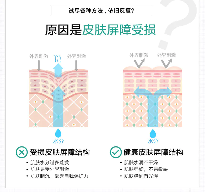 最终加重皮肤干燥的症状。敏感 / 问题肌肤的屏障本