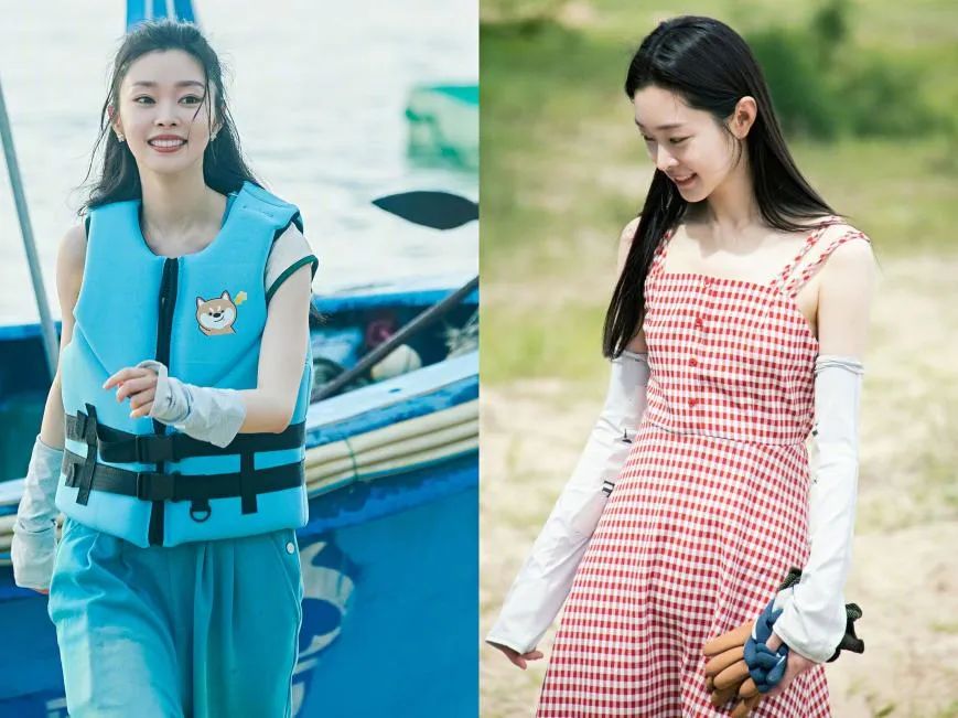 在节目中,她穿了不少无袖衣服,连手臂都白到发光。