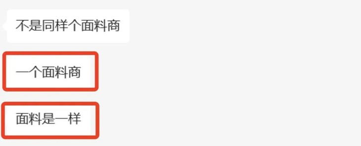 没想到品牌底气很足:直接回复那是一个面料商、同样的面料。