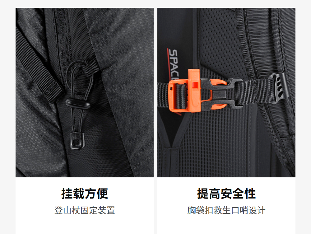 内置求生哨: 前胸袋扣集成救生口哨,哨音响亮,传播距离广。关键时刻可用于联络同伴、危险示警、失联求救,为安全出行增添保障。