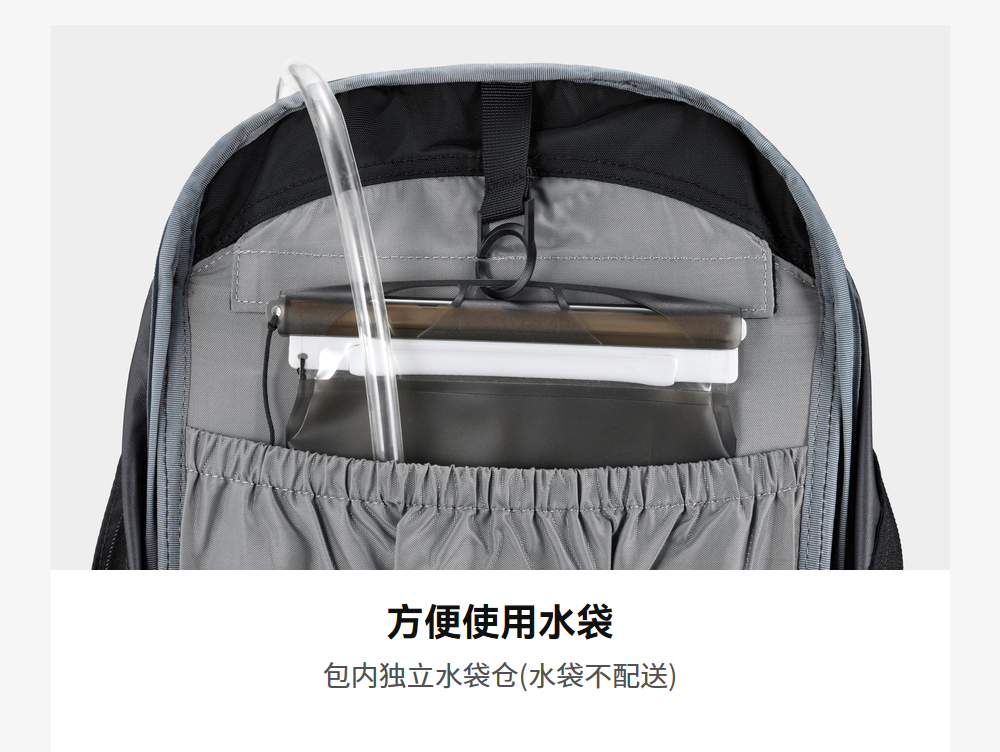 包内设有独立水袋仓(水袋需另购),轻便易收纳。