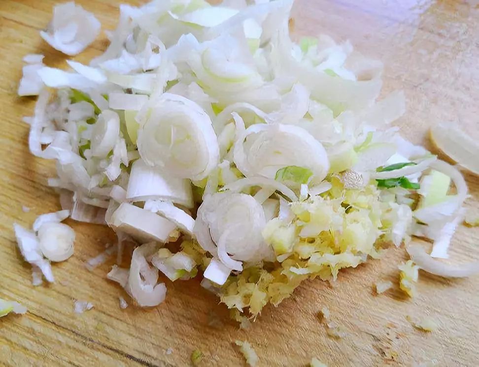 炝拌汁:1、葱白切成葱花,姜切成末,蒜切末;