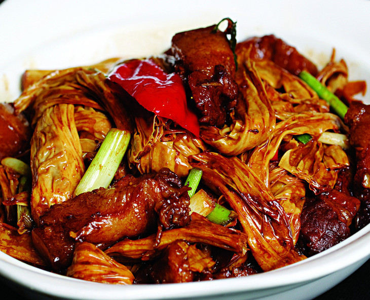腐竹是黄豆的浓缩精华,将豆子磨烂、煮沸,豆浆表面凝起的一层油皮挑起、晾干,豆子绝大部分的营养和精华就藏在这一层层的腐竹里。