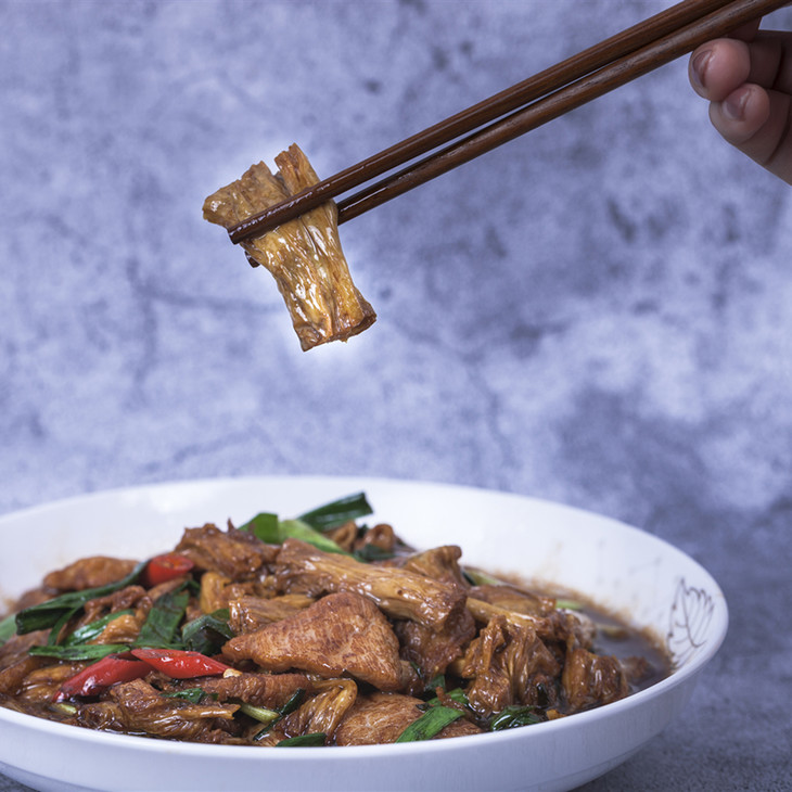 一个成年人每天至少需要补充65克蛋白质,才能满足身体正常运营。而100克头层腐竹就能补充40克蛋白质!
