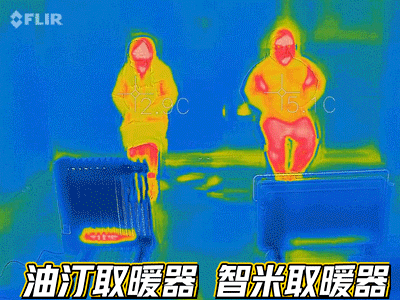 智米取暖器在1分钟后率先发力,开始进行辐射升温。