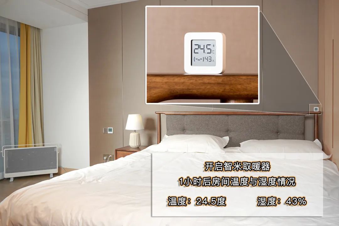 房间的两侧放置智米石墨烯取暖器和环境测试仪,此时室内