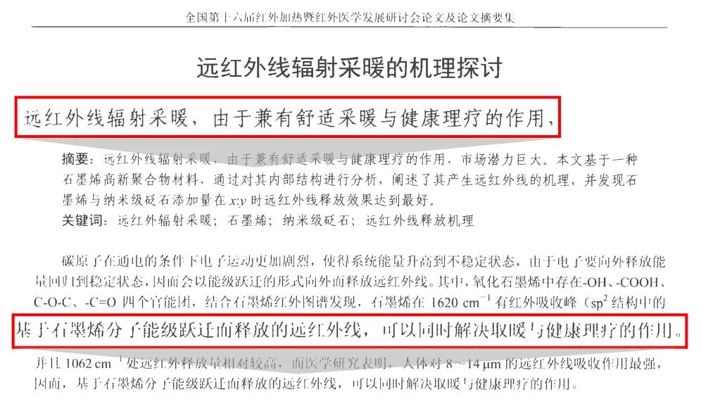 导热系数最高的碳材料,而且特殊的原子结构可以将热量转化为远红外线辐射出去,达到升温效果,
