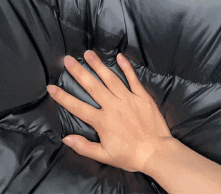 用手轻轻按压,可以看到羽绒像云朵一样蓬起来,蓬松度也十分优秀,保暖性JI佳!