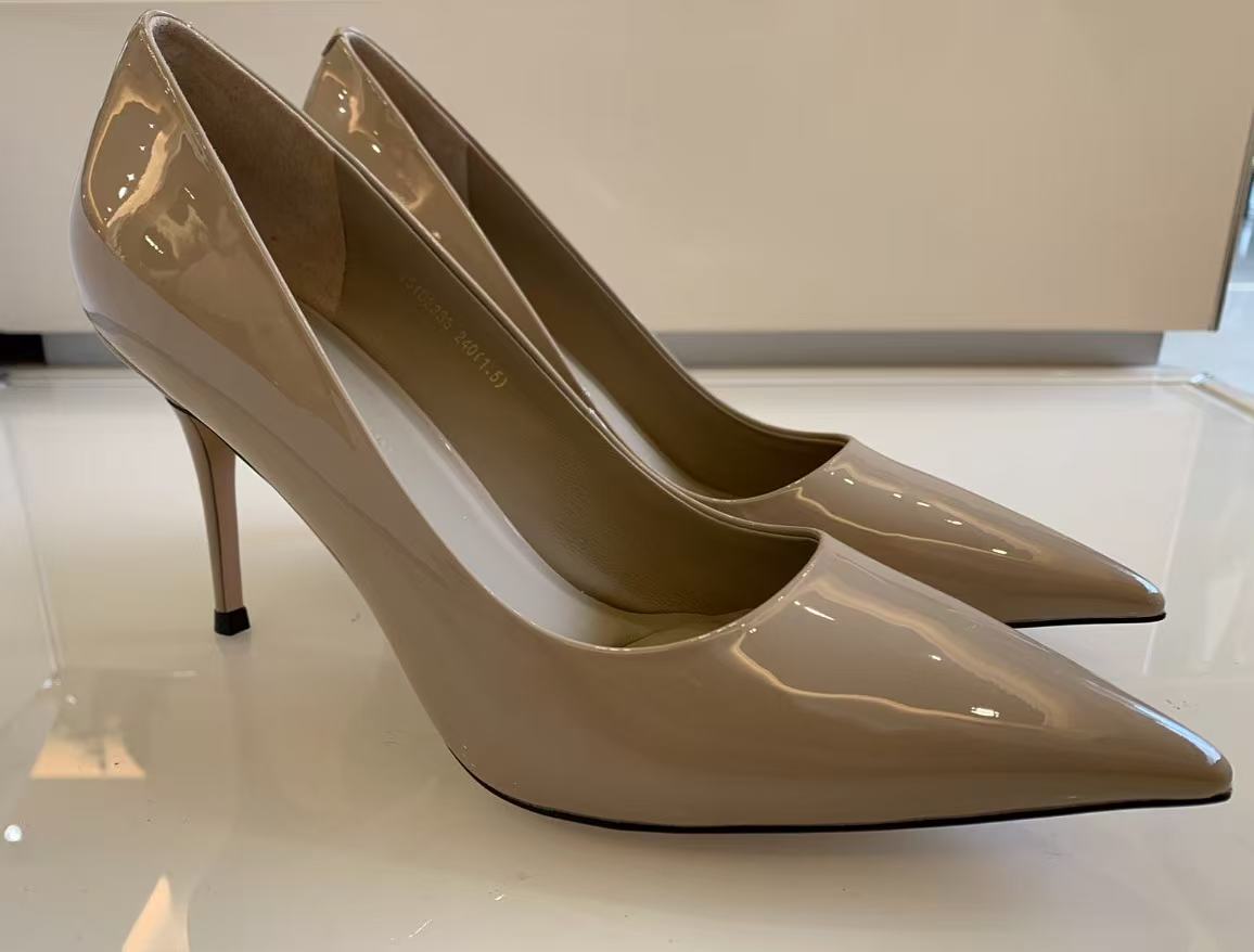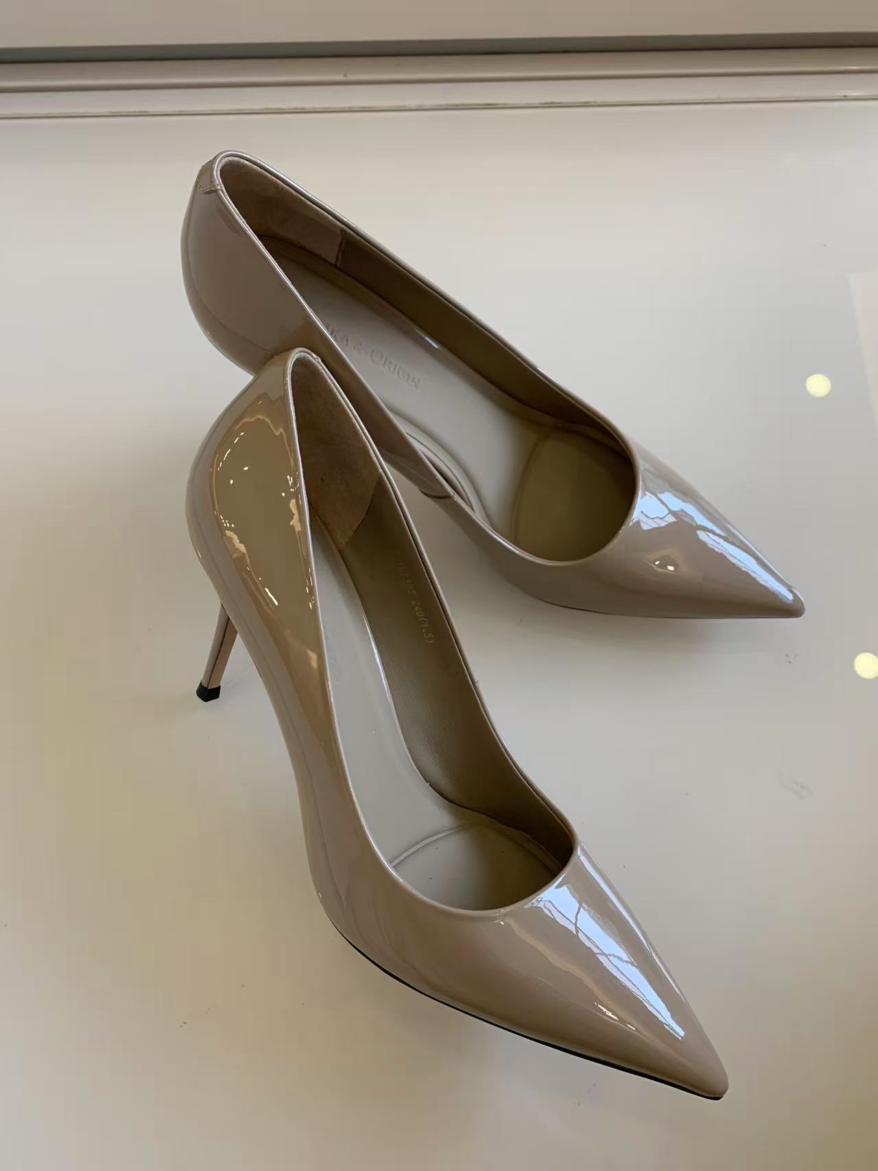 咱们这款裸色鞋,质感好得肉眼可见,精致的漆皮材质,利落优雅,特别适合新手起步~