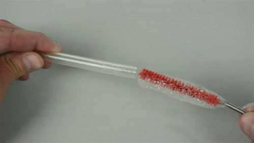 取下软管和咬阀,使用小清洗刷擦洗软管内部。
