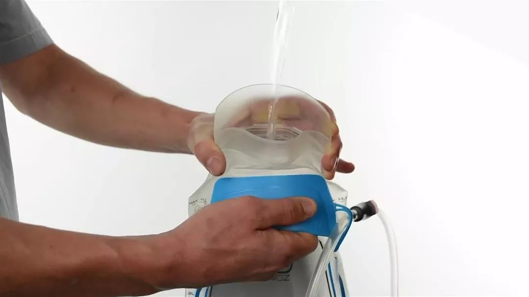 静置水袋15分钟,然后将液体倒出。用干净的凉水冲洗水袋和软管。在通风良好的地方悬挂水袋晾干。