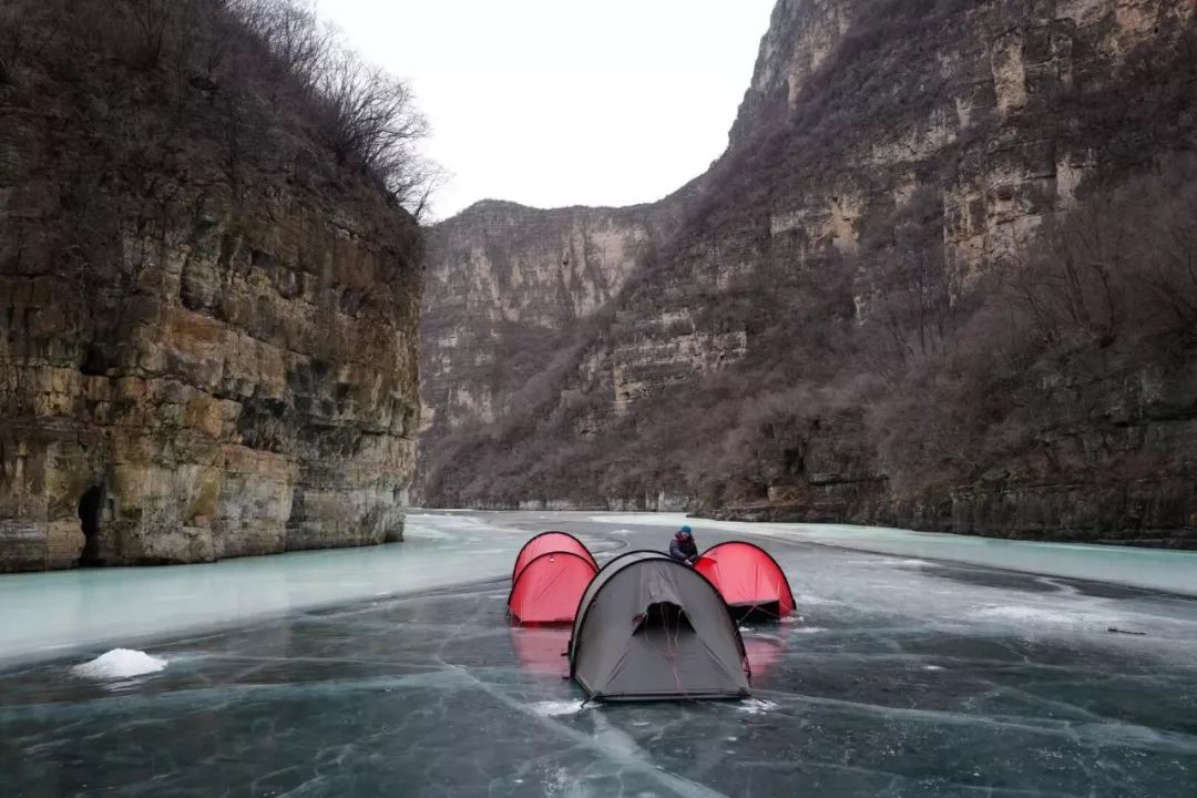适合冰上扎营的湖面有限。一入冬,北方的山友就在翘首以盼,待冻冰足够厚,带上露营装备,直奔扎营点。