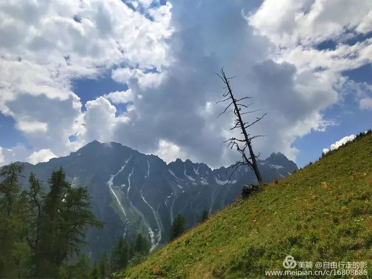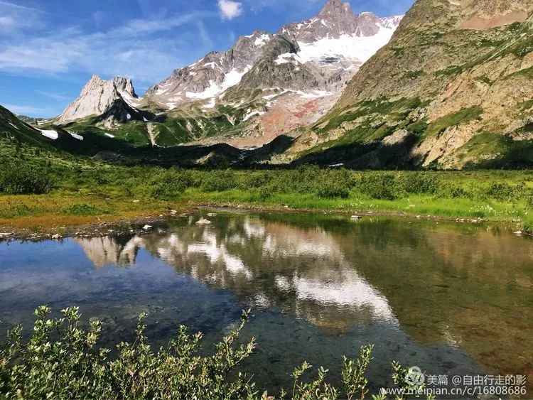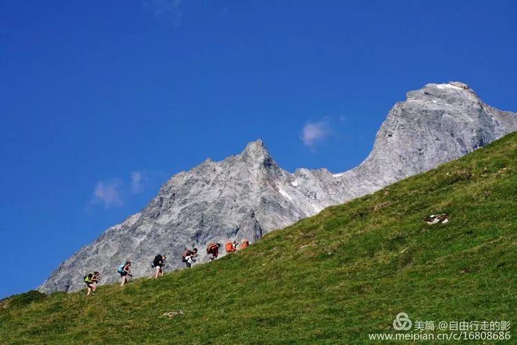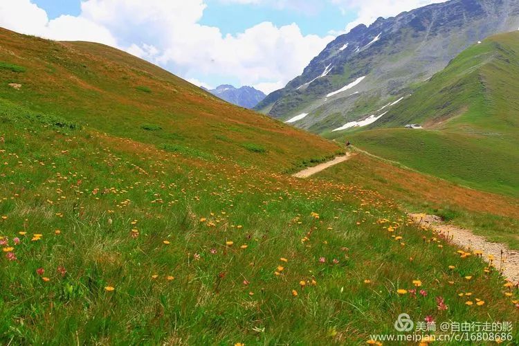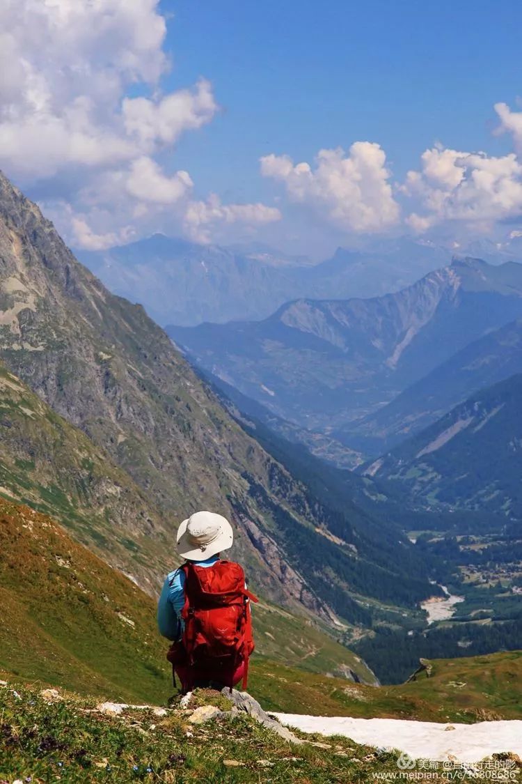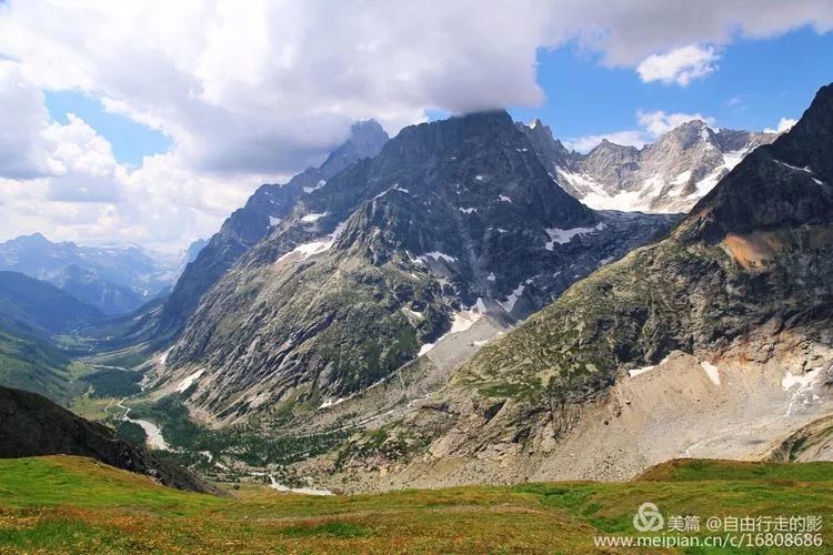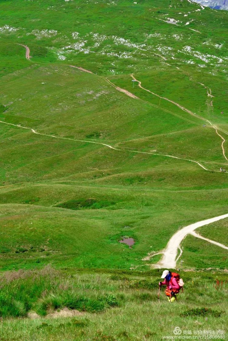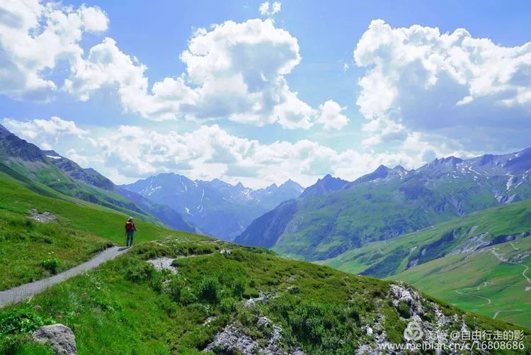 今天我们要翻过海拔 2537 米的 Ferret 费丽垭口到达意大利,前往垭口的路上绿草茵茵,野花盛开,冰雪相伴,每当累了停下脚步回首看看自己曾经走过的路,心中格外的舒畅。
