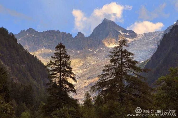 回望来时的路,就是从这高山中走下来的,金色的阳光照耀在山巅,冷峻的雪山冰川都染上了一层淡淡的金色。我们走在乡间的小路上,听牛铃铛叮当作响,一天的辛苦疲惫瞬间消失不见了,所有辛苦的付出都获得了超值的回报。