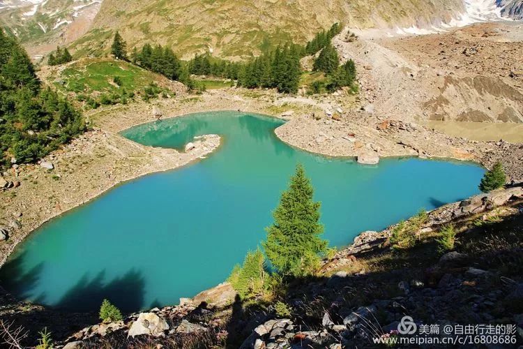 美丽的 Lac de Combal 湖,海拔 1975 m,雪山冰川倒映水面,特别迷人。