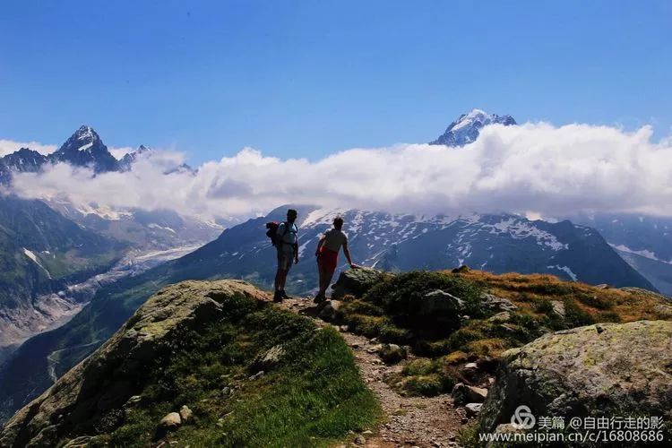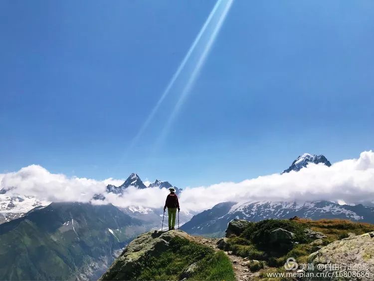 云雾宛如玉带缭绕在雪山上,路遇各国的户外徒步爱好者和山地越野跑爱好者,大家互相打个招呼“bonjour”,迅速拉近了彼此的距离。