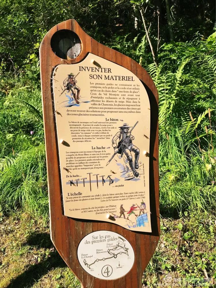 (阿尔卑斯山上的特色标志牌,图案是介绍了冰镐的起源和进化)