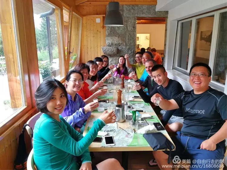 我们住的徒步木屋有许多萌萌哒小摆件,让人爱不释手。吃一顿还是三道的大餐,全体队友干杯。