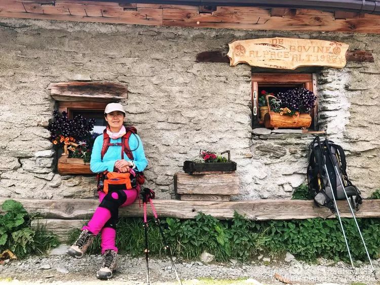 今天的行程强度较大,爬升和下降都比较陡,而且全程没有手机信号。徒步第四天,爬升 1000 米,下降 1000 米,时间 9 小时,住意大利小镇的高山木屋。