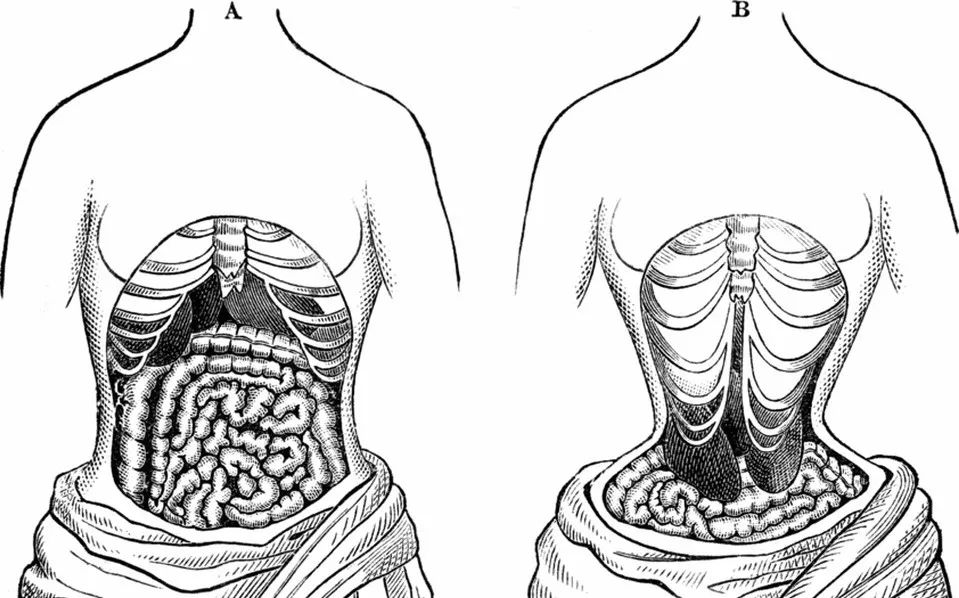 但是,把束腰摘下来,肋骨还是会回到原来的状态,这种变化非常有限,也不持久。除非你戴的束腰非常非常紧,而且持续戴的时间非常长,那么肋骨的形态真的可能在持久压迫下改变。