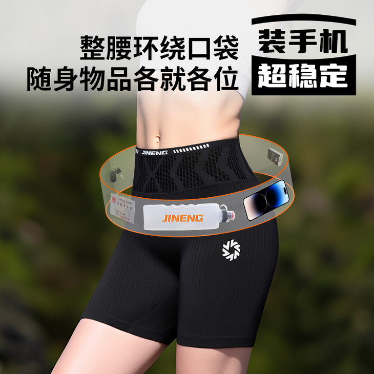 ● 360°环绕式腰包口袋,长距离跑步运动不晃动。高弹速干透气面料,暴汗也不惧怕。锦纶86%、氨纶14%,修身不紧绷!