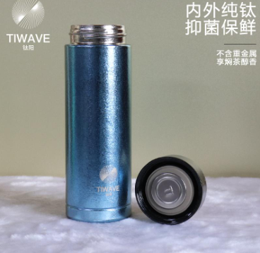 【钛阳蓝色纯钛冰花400ml保温杯】